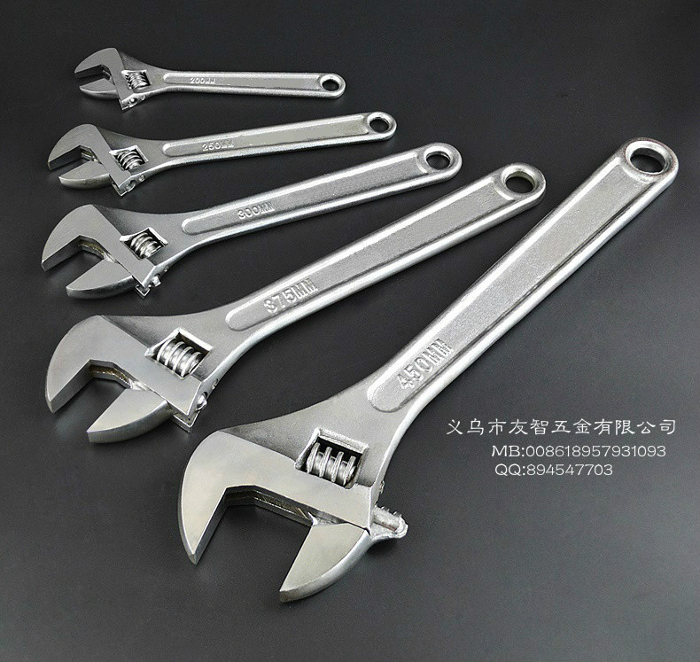 2020-06-30 yangtools 2.5 inch -24 inch carbon steel forged American live wrench 2.5 inch -24 inch carbon steel forged American live wrench Yiwu Youzhi Hardware Co., Ltd. Main Products: Spanner, pliers, combination tools, screwdriver, tape measure, hammer, art knife, electrode holder, etc Can issue 16% invoice Contacts: Yang Cheng Mobile: 0086 13625792022 E-mail: deal@139.com WeChat: 0086 13625792022     Address: 19913, 5F, G2-International Trade Mart (District 2),Yiwu,China